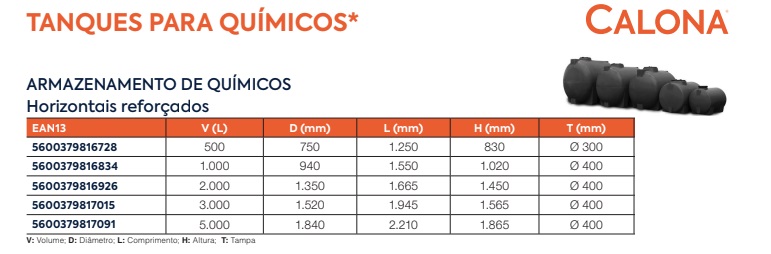 Os depósitos Calona são soluções reforçadas e robustas fabricadas através da técnica de rotomoldagem com PEAD 100% virgem, o que lhe confere uma elevada resistência química e