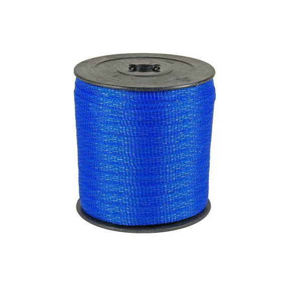 Rolo de fita de 10mm 4×0,15 mm em AZUL para cercas eléctricas utilizadas para animais tais como cavalos, vacas etc.